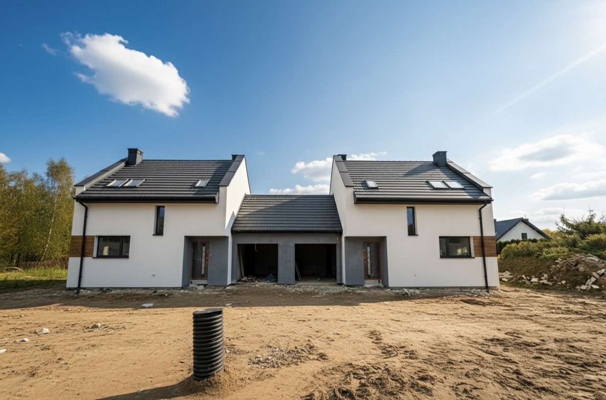 🌤️ Pogoda w końcu odpuściła, więc przyspieszamy! Gonimy termin oddania dachów 🏠, a w międzyczasie realizujemy prace kolejnego etapu, a nawet ostatniego – przyłącza mediów do budynków 💧⚡.