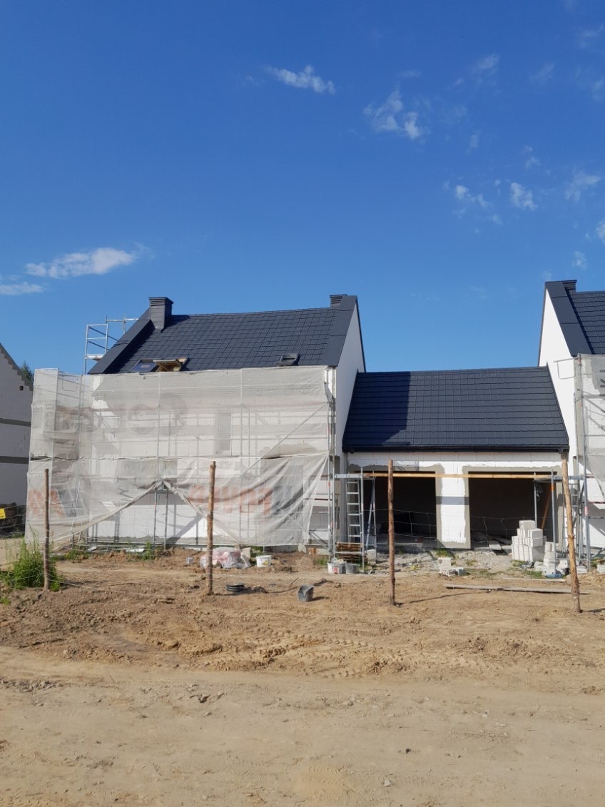 W najbliższych dniach na budowie pojawi się już ekipa od elewacji, która wykona kompletną pracę na ścianach przy garażach, zanim położymy pokrycie dachowe.